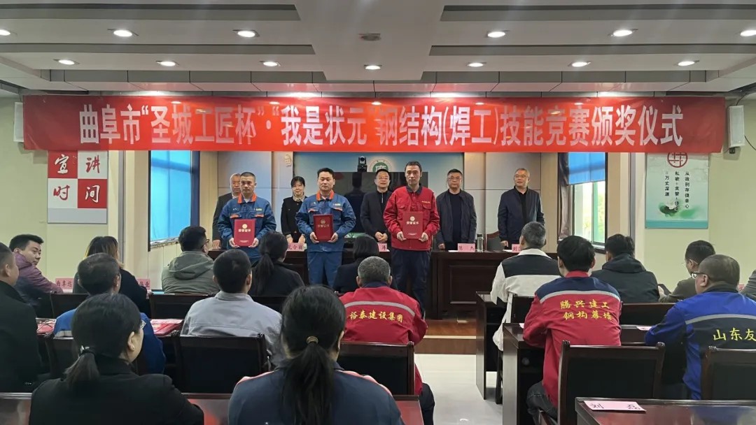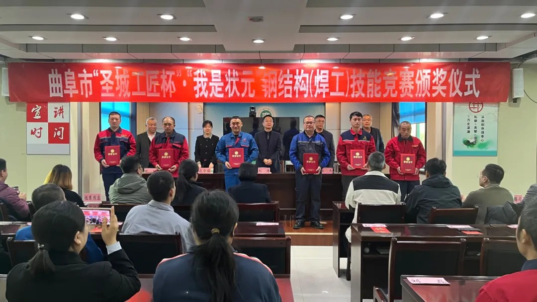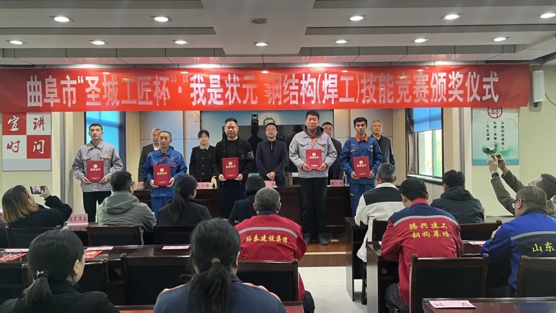 11月8日,由曲阜市住房和城鄉(xiāng)建設(shè)局、曲阜市人力資源和社會(huì)保障局、曲阜市總工會(huì)主辦的曲阜市“圣城工匠杯”·“我是狀元”鋼結(jié)構(gòu)(焊工)技能競(jìng)賽頒獎(jiǎng)儀式在曲阜市住房和城鄉(xiāng)建設(shè)局隆重舉行。